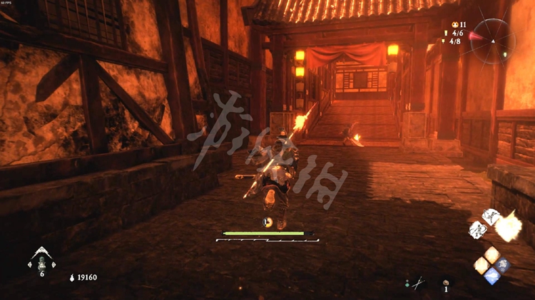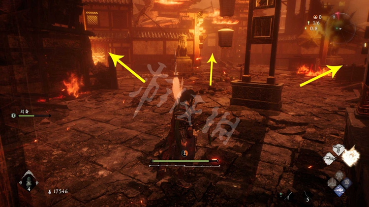 跳到街道上清理出现的敌人。牌坊下的屋子里有个宝箱,之后穿过屋子。