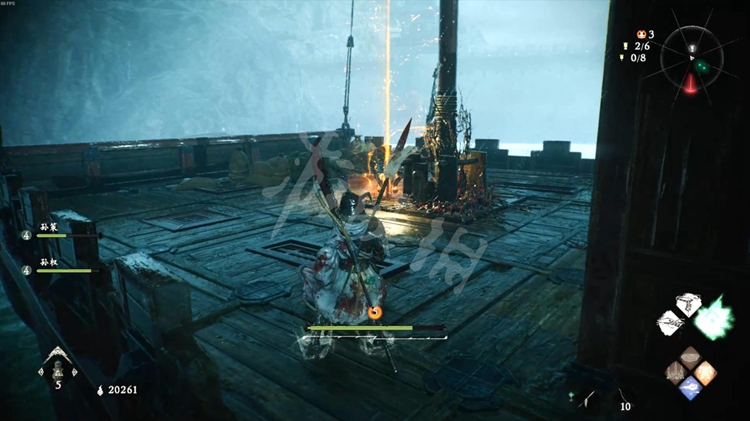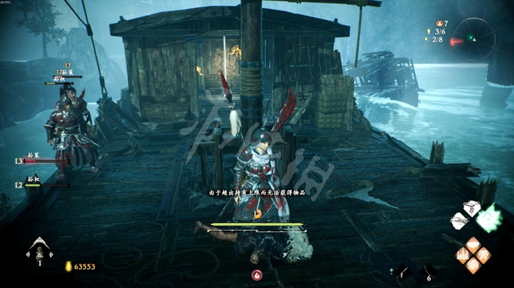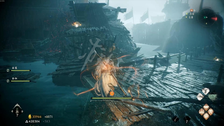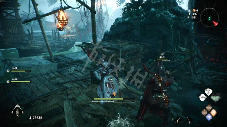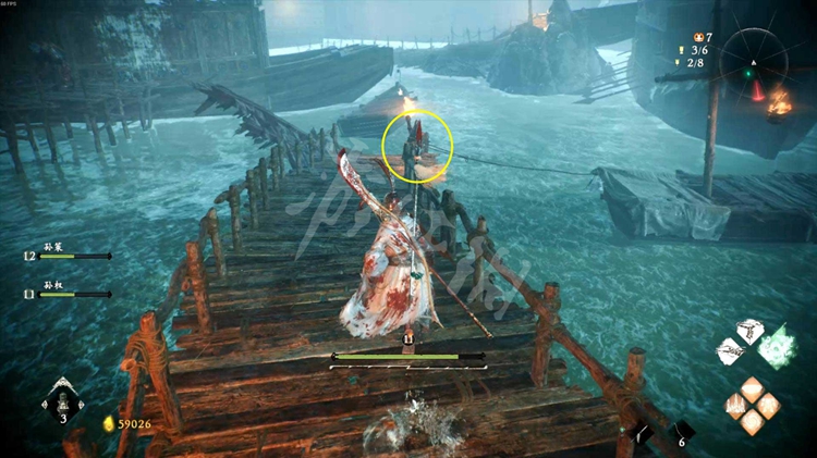 注意这里的怪物士气等级比较高。可以先跳到船的顶部解决掉巫士,降低其他怪物的士气。