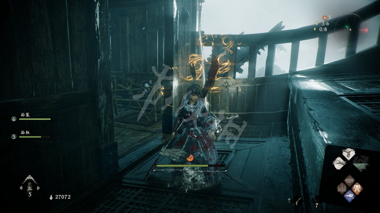 梯子后面的房间里能找到一个小宝箱,之后从梯子爬到上层船舱。