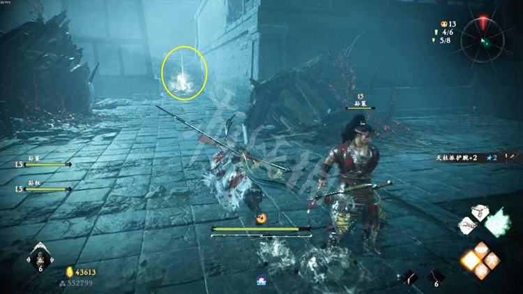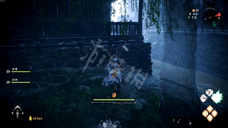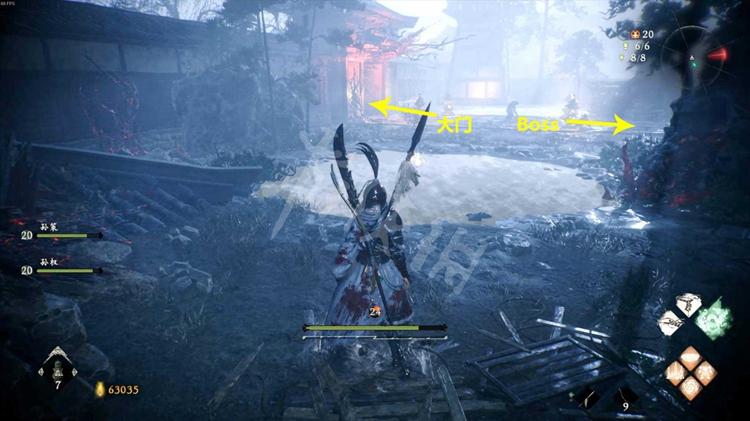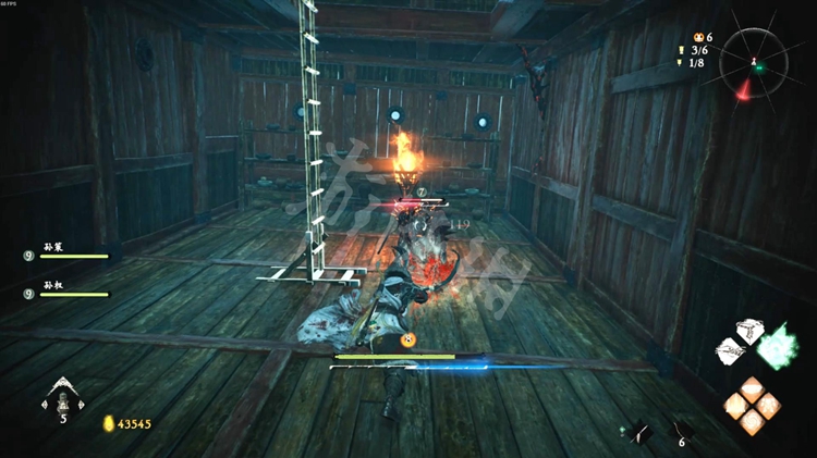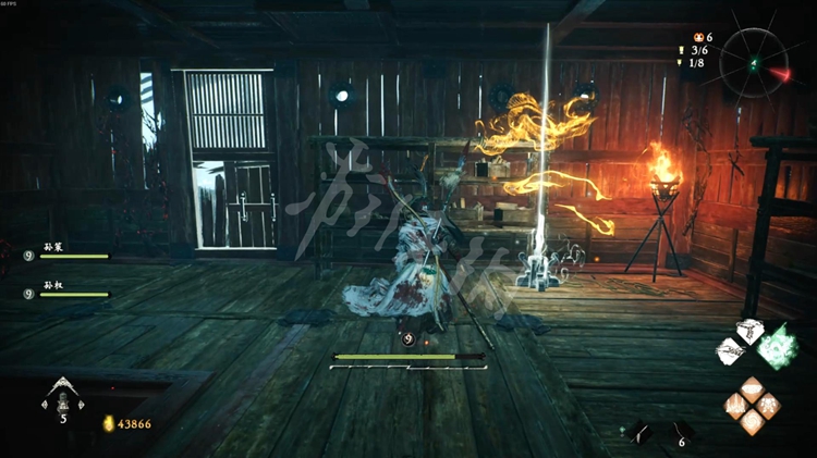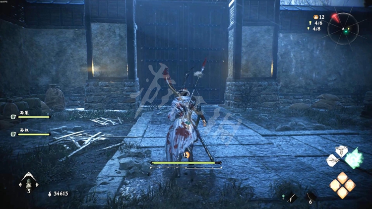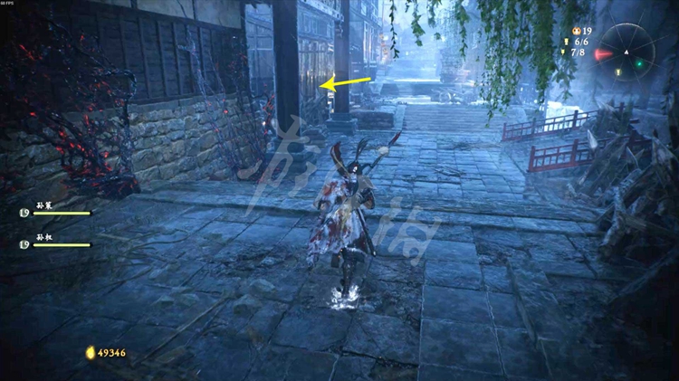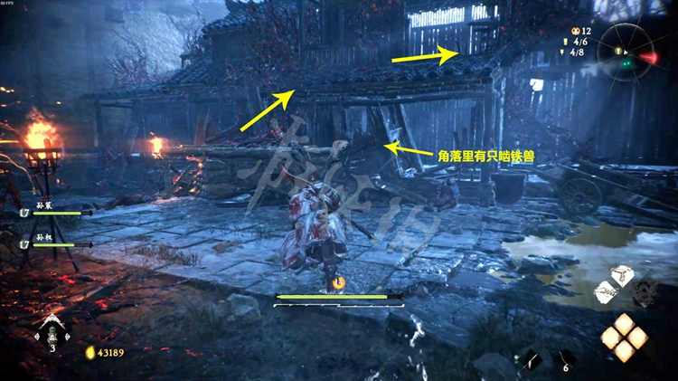 从一旁的洞口跳到院子里,击败酸与开启旁边的旌旗点。