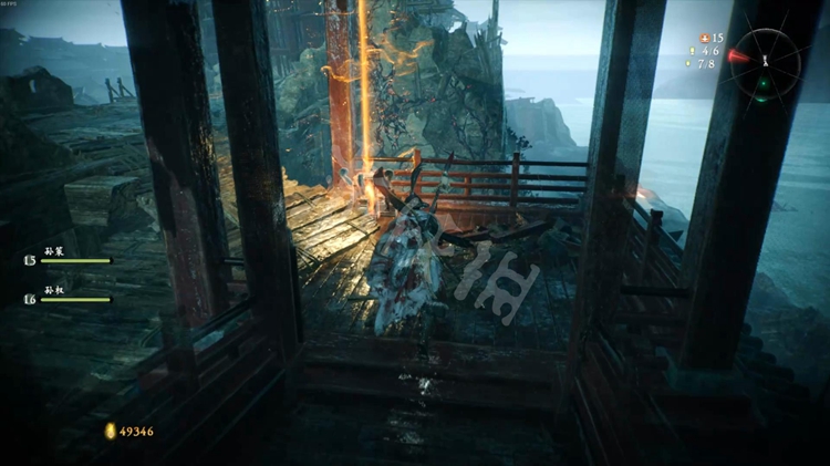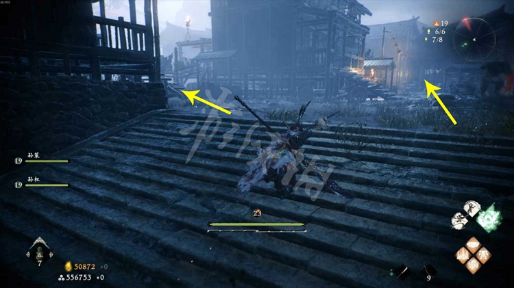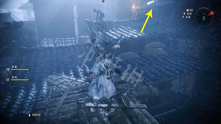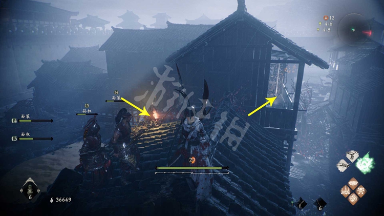 跳上去爬上梯子可以在顶端的城墙上找到牙旗点。这里,也就是之前江边的楼宇,玩家也可以从外面进来。