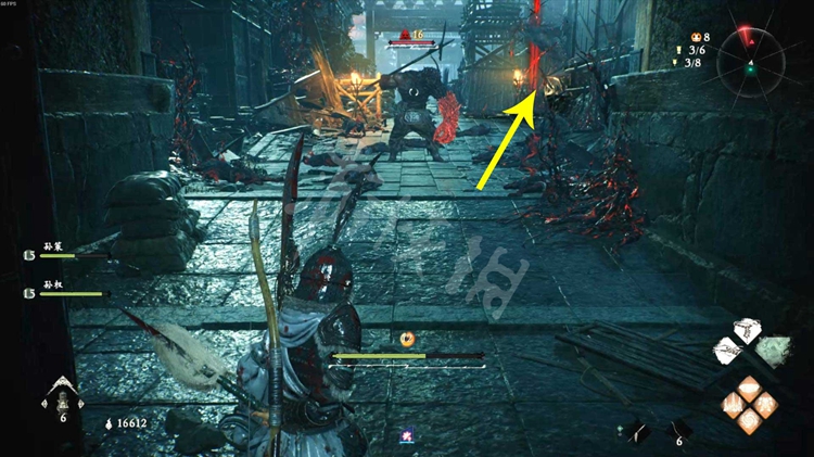 进入城门,来到街上击败守卫的怪物开掉牙旗点。