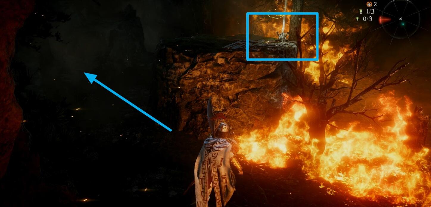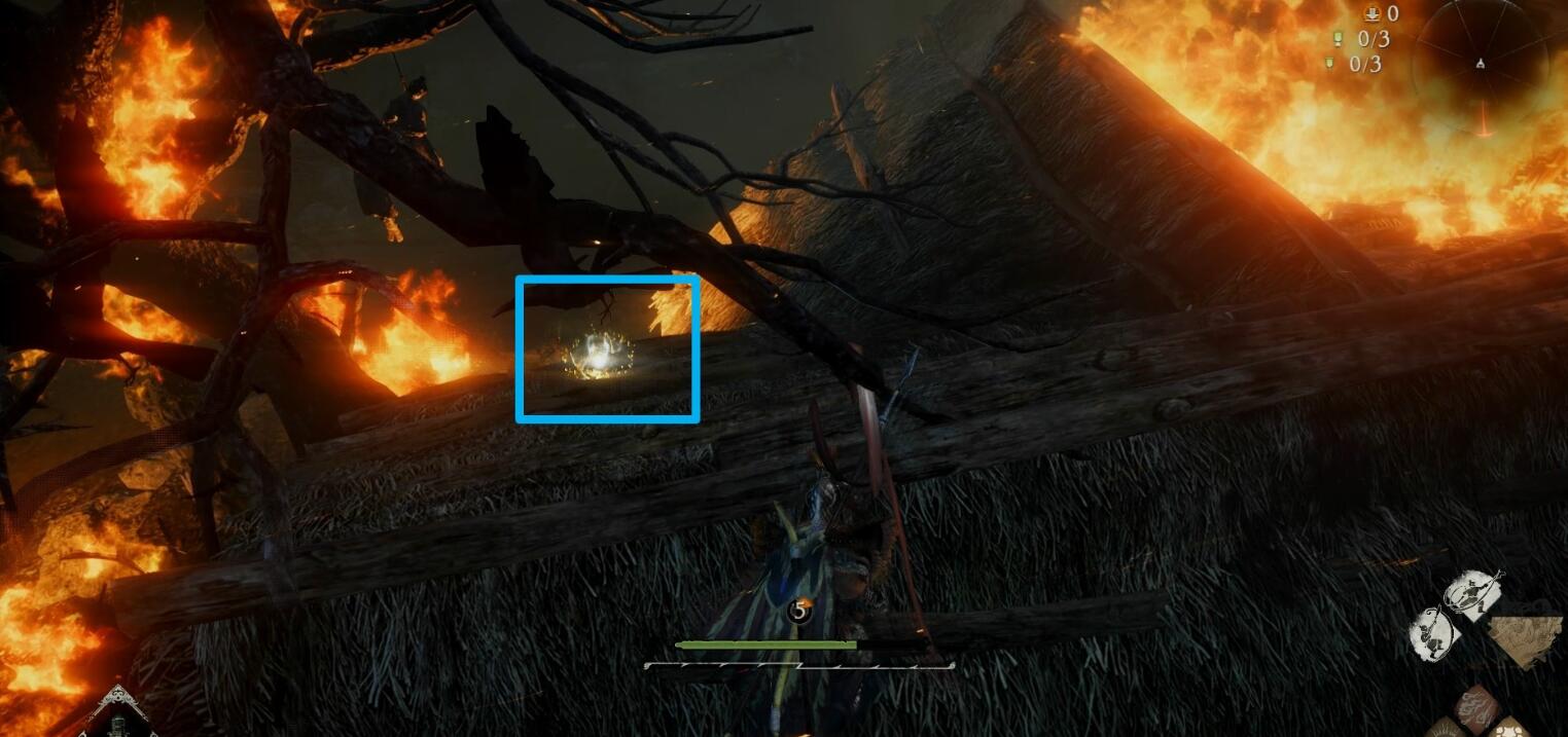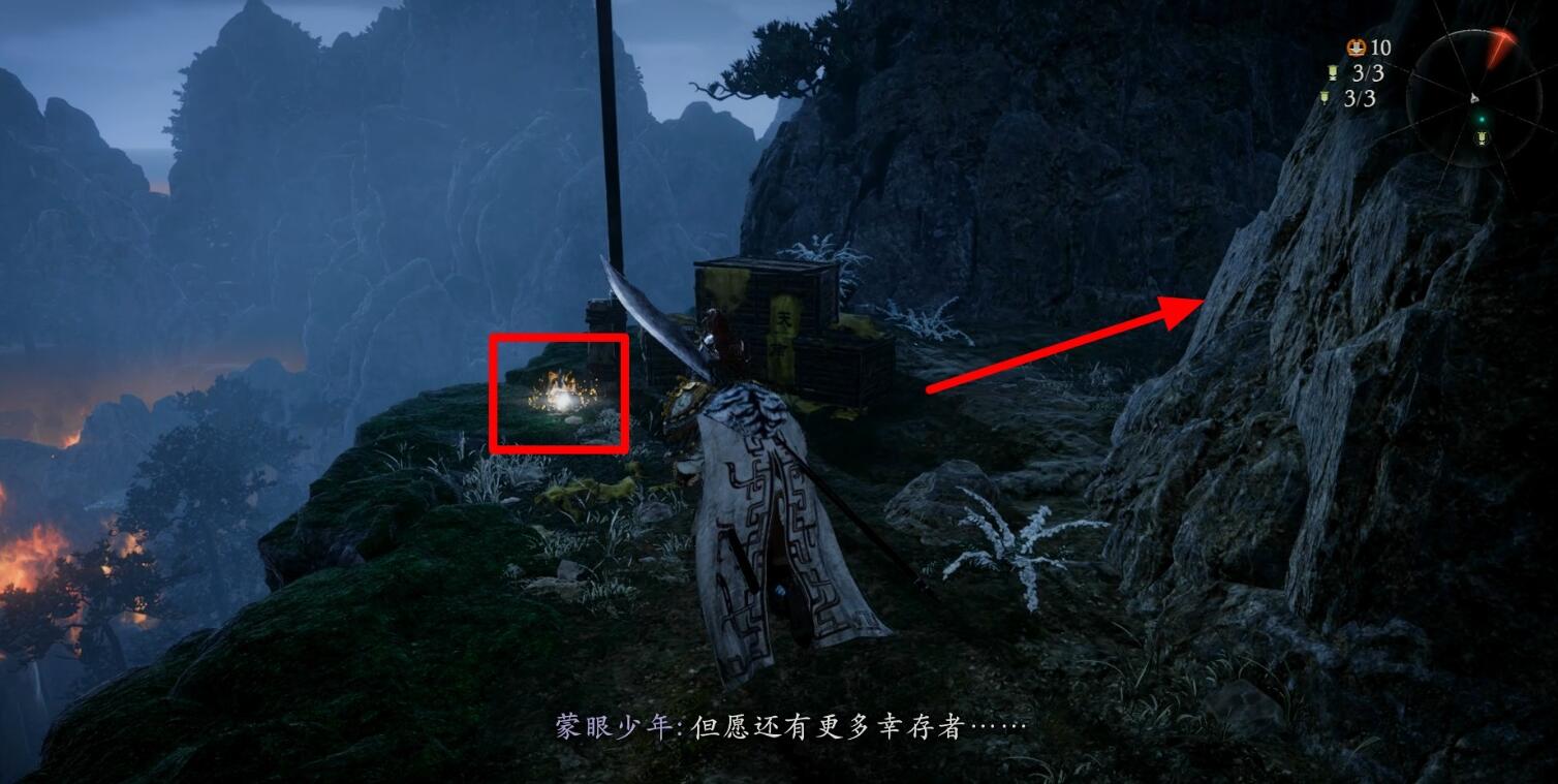 在前方发出黄色光芒的底座处可以安插牙旗(1/3),在牙旗旁的石头下可以获得道具【黄巾贼徒手记·上】。