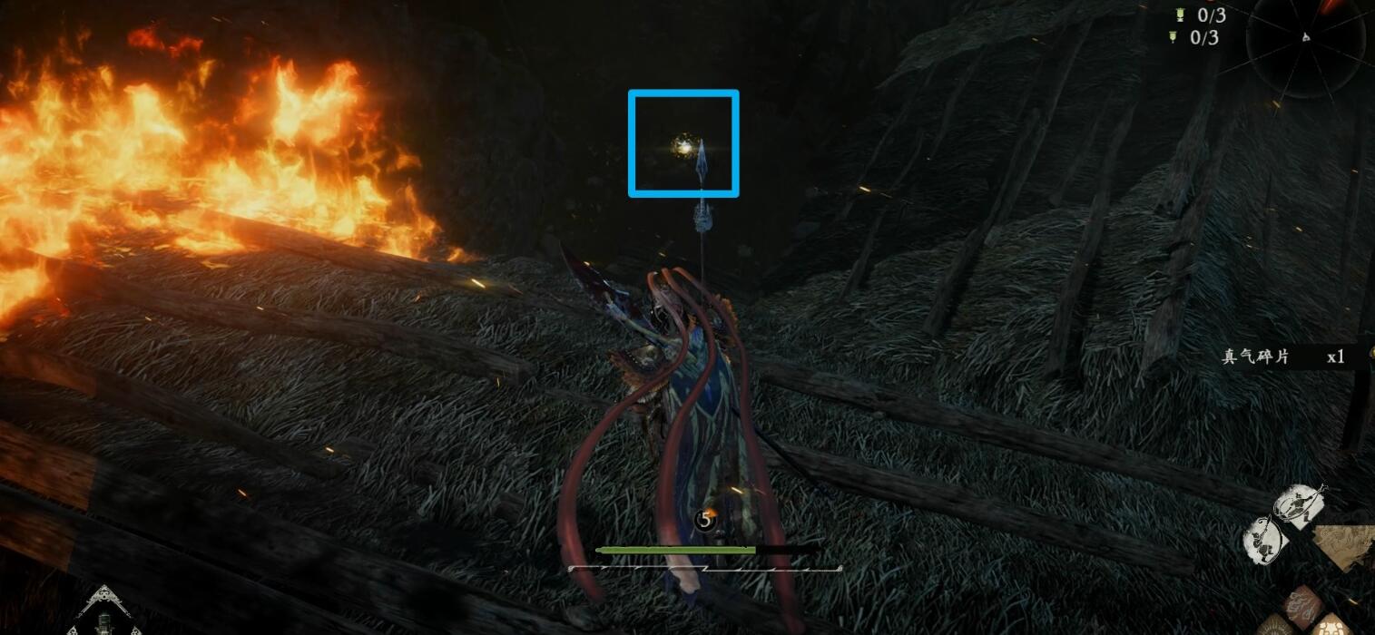 沿着小路继续前进,消灭两名敌人后在最前方可以获得1个真气破片,随后向右后方走。