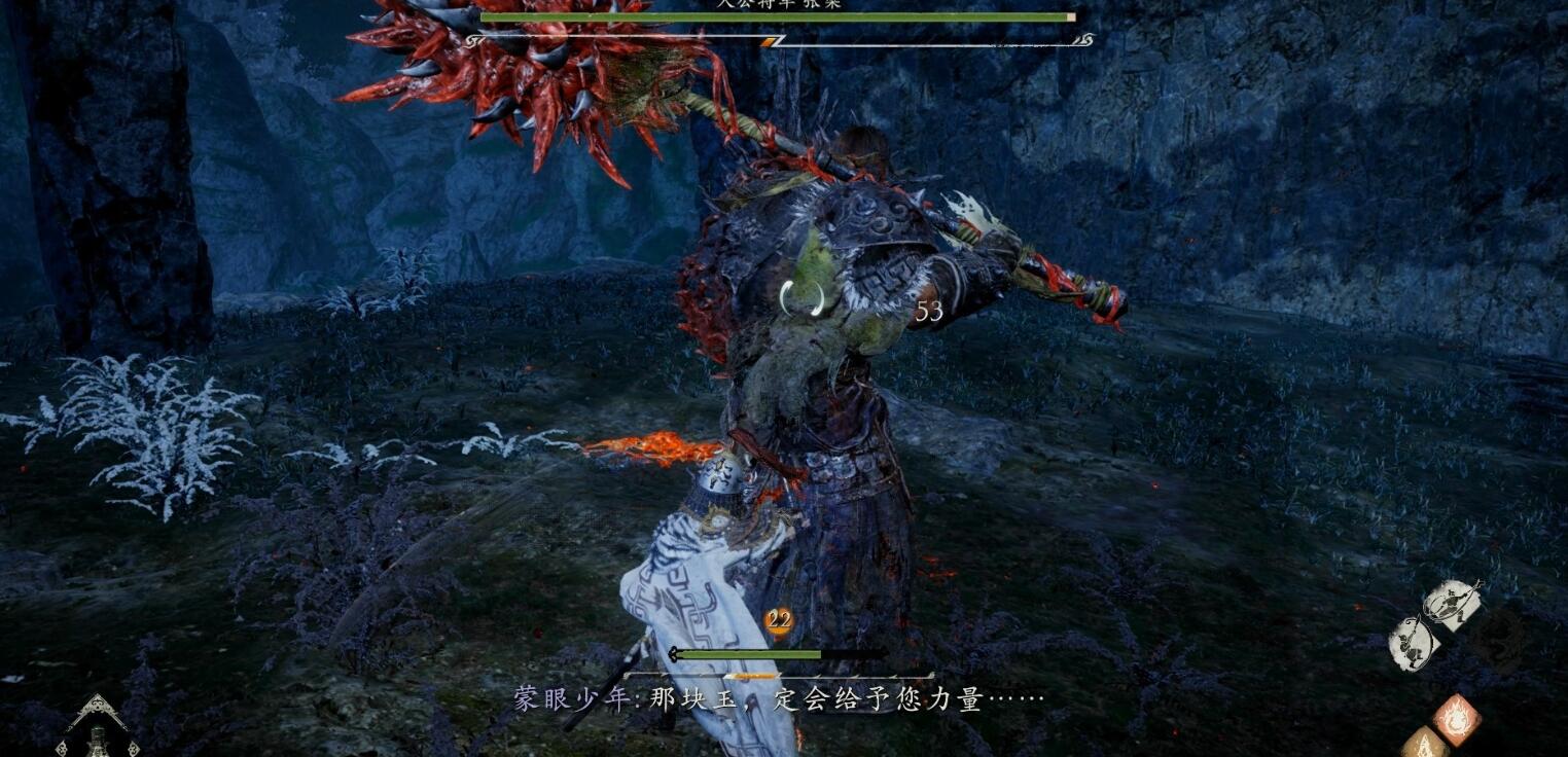 此时张梁释放杀招时,会在远处完成蓄力发起冲锋,在接近我们后自下而上挥舞狼牙锤挑击,当狼牙锤开始向上挥动时按B闪避即可化解攻击。