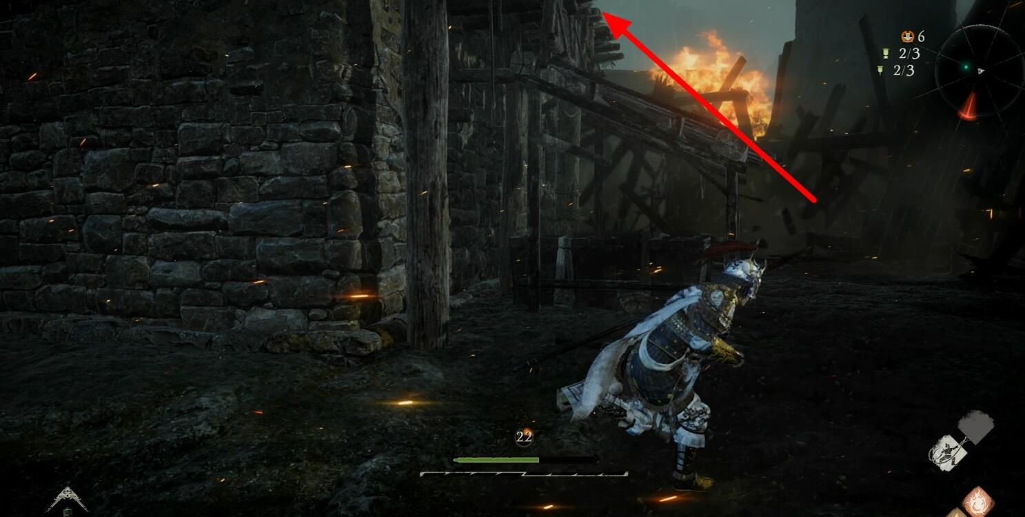 将屋顶上的木头踢落可以打通回到获取第1个真气破片位置的捷径。