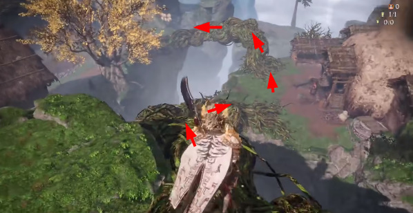 4、找到三处NPC的位置后,玩家需要返回到刚才接取任务的地方,沿着树干一直走。