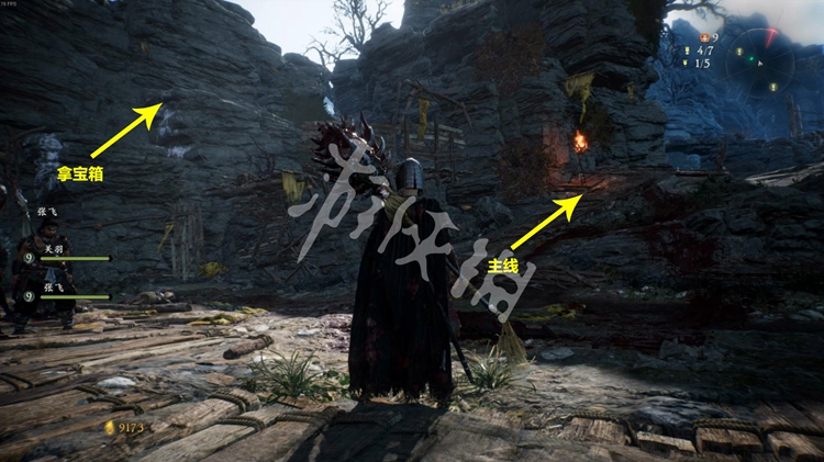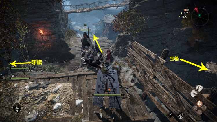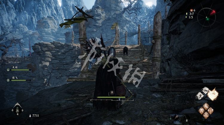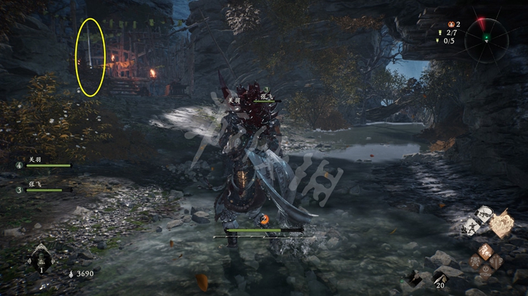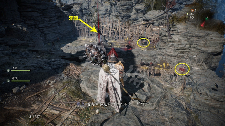 进入关卡后即可找到第一面牙旗,同时本关的剧情援军队友为关羽和张飞,探索多让他们顶在前面能降低不少难度。