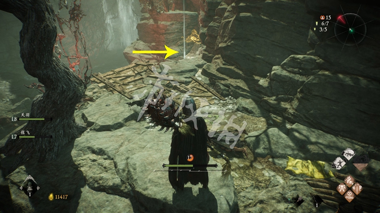 沿着溪流往前走,路上有些黄巾军,清理掉后走到尽头。在左侧有个旌旗点,解决掉守卫的妖丹巫士开掉旌旗。