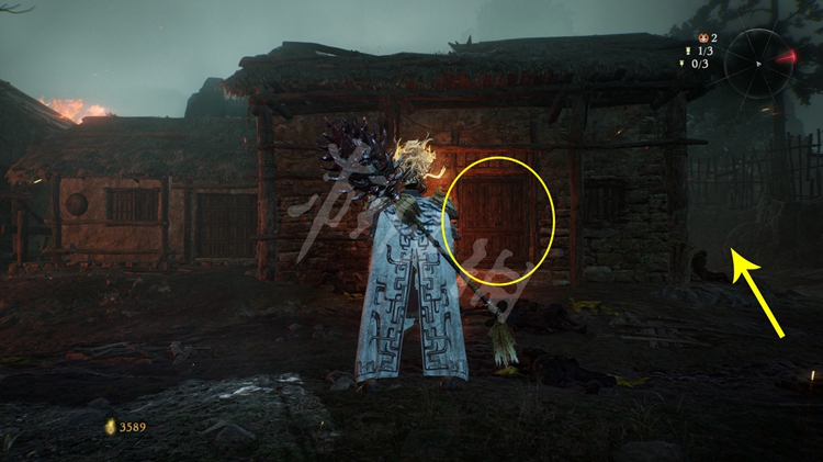 解决掉“伥鬼”后可以在周围搜索一番,这里屋子的正门是从里面锁上的,需要先绕道屋后。
