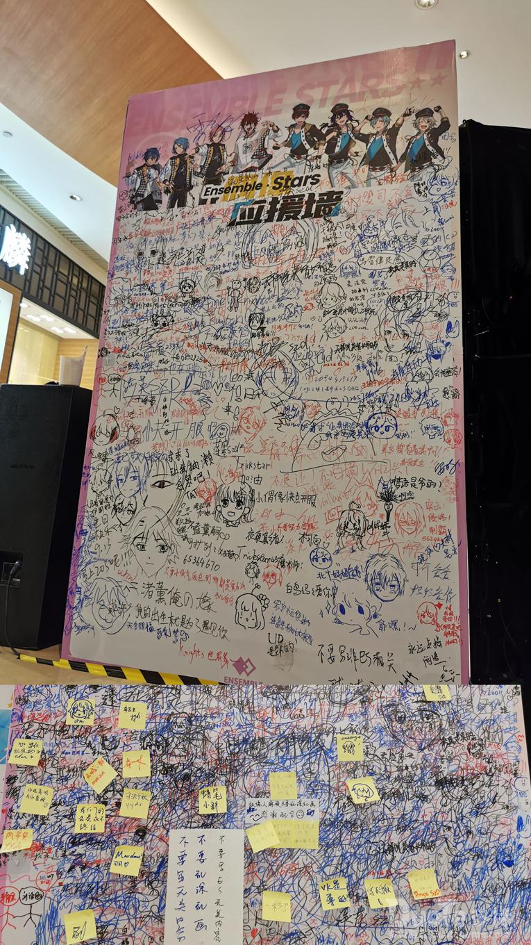 千言万语说不尽,制作人们心语写满了满满一面应援墙,却还是有制作人们没能留下自己想说的话,于是在应援墙上贴了各色的便利贴。