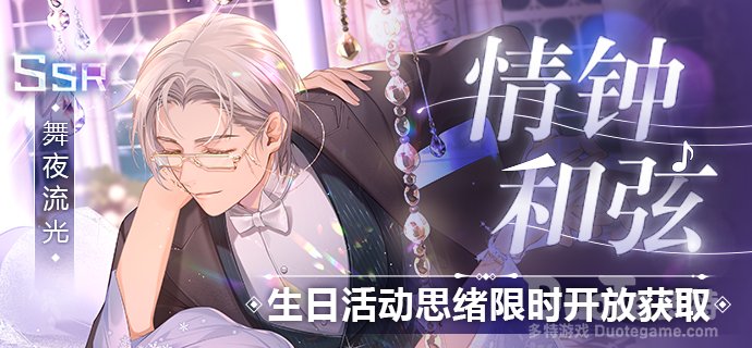 9月19日起至9月30日,「情钟和弦」活动女神之影即将开启。本次活动女神之影SSR思绪中仅包含3张莫弈SSR,分别为SSR「舞夜流光」、SSR「咫尺远近」、SSR「危情邀约」,其中,莫弈生日限定SSR「舞夜流光」思绪获得概率提升。