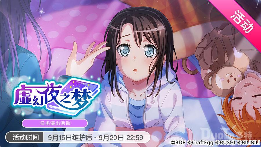 各位亲爱的BanG Dreamer:9月15日维护后,游戏内将开启「虚幻夜之梦」任务演出活动和「打盹的蓝色绵羊招募」,并追加原创歌曲《はれやか すこやか ぴかりんりん♪》!