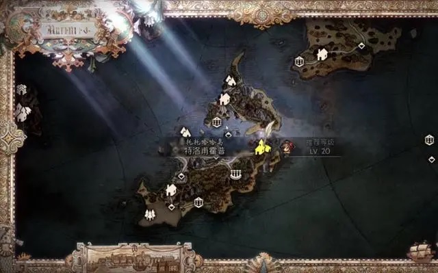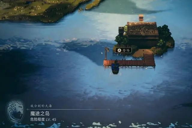 行驶自己的船,往地图右上角航行,登陆魔途之岛。