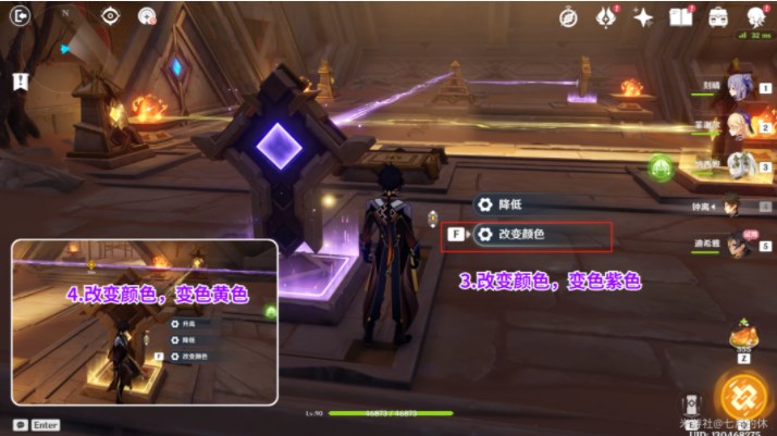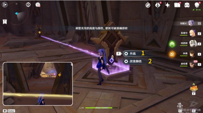 ③继续往里走,看到机关,先把中间的机关旋转2次,就会下沉,再把黄色光线的机关降低即可开门了,就能看到宝箱了,同样打掉怪即可获得。