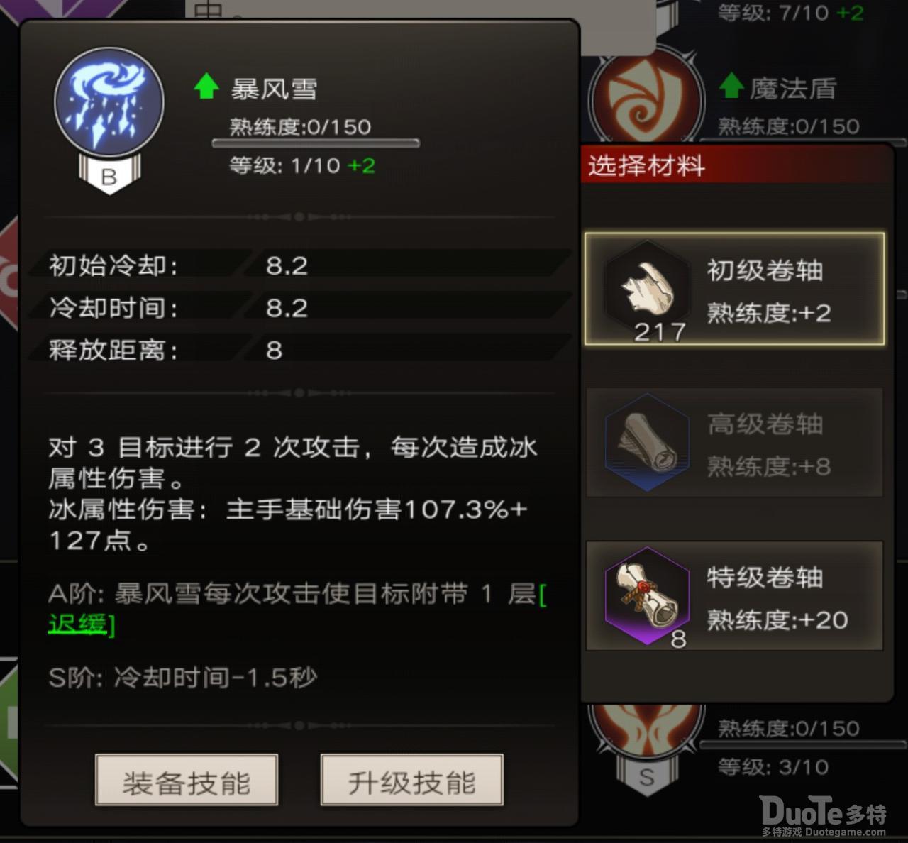 二转时,选择『法师』职业,便可以利用[暴风雪]来对敌方施加“迟缓”这种负面效果了。
