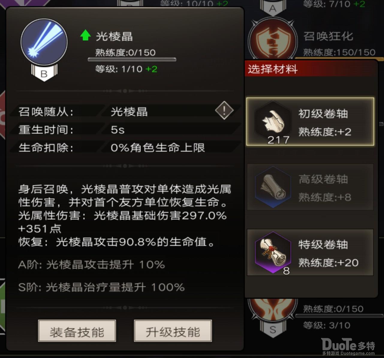 四转职业这里不做推荐,相信到了选择四转职业时,冒险者内心已经有了想选择的职业。最后召唤流比较注重冒险者们的“秘”属性,因此要尽量提高这方面的能力;而在武器方面,则建议选择《长鞭》,这种武器天生就提供了有关召唤方面的加成。