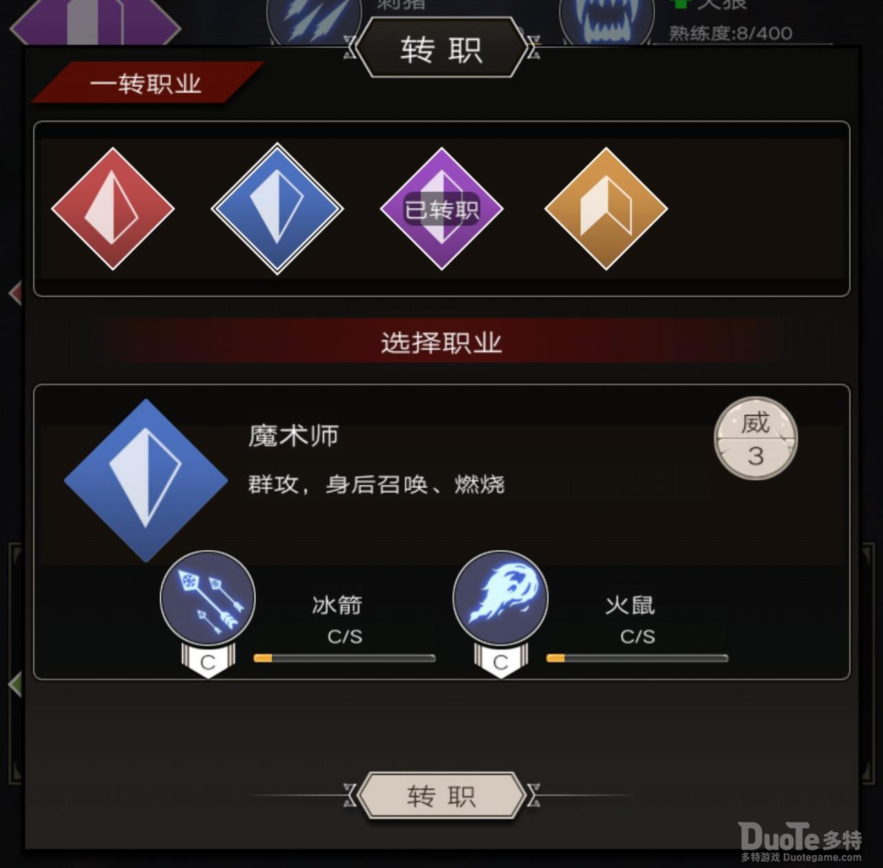 属性流就是利用各种属性攻击,来伤害敌人的一种流派。一转时选择『魔术师』,便可以凭借[冰箭]和[火鼠]两种技能来对敌方造成属性伤害了。
