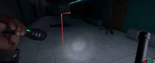 4、进入一个有绿色墙壁的通道,朝里面走,进入右边房间