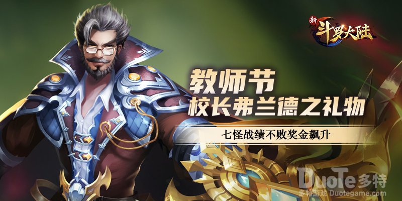 教师节校长弗兰德之礼:七怪战绩不败奖金飙升在原作中弗兰德算是唐三认识的第二位老师,作为一个78级的魂师不算高,而且还有点抠门是个铁公鸡。但是作为老师对七怪的呵护还是不少,而且他是史莱克学院的院长,教学水平上还是不错的,不然也不敢自称怪物学院了。
