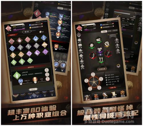 另外,《不朽之旅》最有特色的是,它还在尝试打破传统放置游戏相对固化的线性成长模式。具体是怎么做的呢?先抛开暗黑类游戏标配的随机装备掉落、随机属性和词条、天赋树等内容不说,《不朽之旅》最有特色的是职业组合自由度。四次转职加上副职,合计41种职业里自由组合,单从数学角度计算的话,职业组合就有上万种。