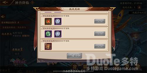 在神兽降临玩法中,玩家可以攻打不同的神兽BOSS,神兽BOSS没有血量设定,玩家在规定的战斗时间内任意攻击神兽。没有严苛的通关条件,上阵你的最强阵容将大招尽情砸向BOSS,全屏伤害爆字的快感不言而喻!在神兽降临玩法中打出的伤害越高能够获得的奖励越丰厚!战斗时间有限,如何才能打出更高的伤害?玩家的阵容构成是关键。