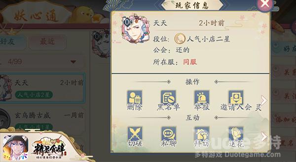 想要了解自己配置的阵容强不强,可以使用阵容切磋功能,寻找其他店长练手。在妖心通里找到好友界面,点击好友头像,即可看到新推出的阵容切磋功能,店长可以编辑阵容,和好友的冒险阵容不停比试,从而获得更加优化的冒险阵容配置。