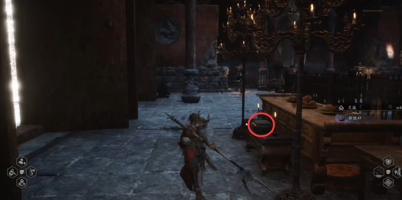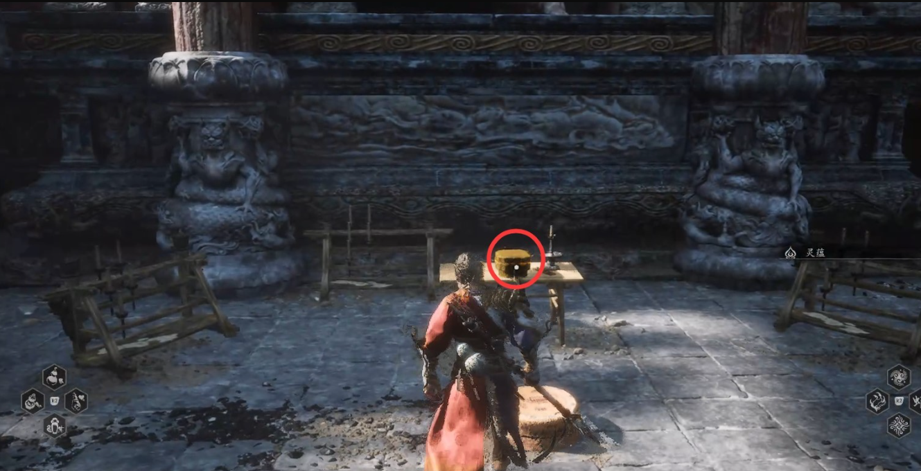 14、经过小广场,来到地图正中间的广场,广场中间房子里,开盒子得到【珍玩】雷榍。广场北面打守着大殿入口的泥塑金刚,得到【精魄】泥塑金刚。