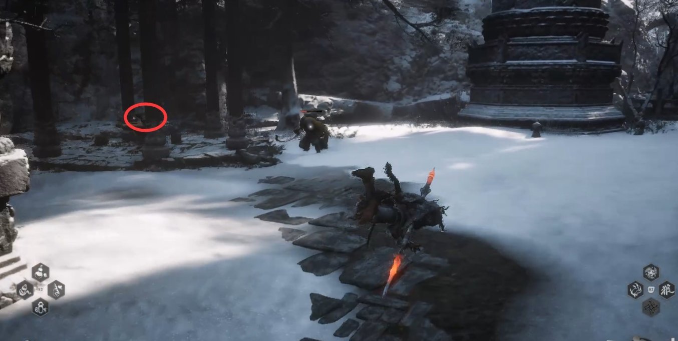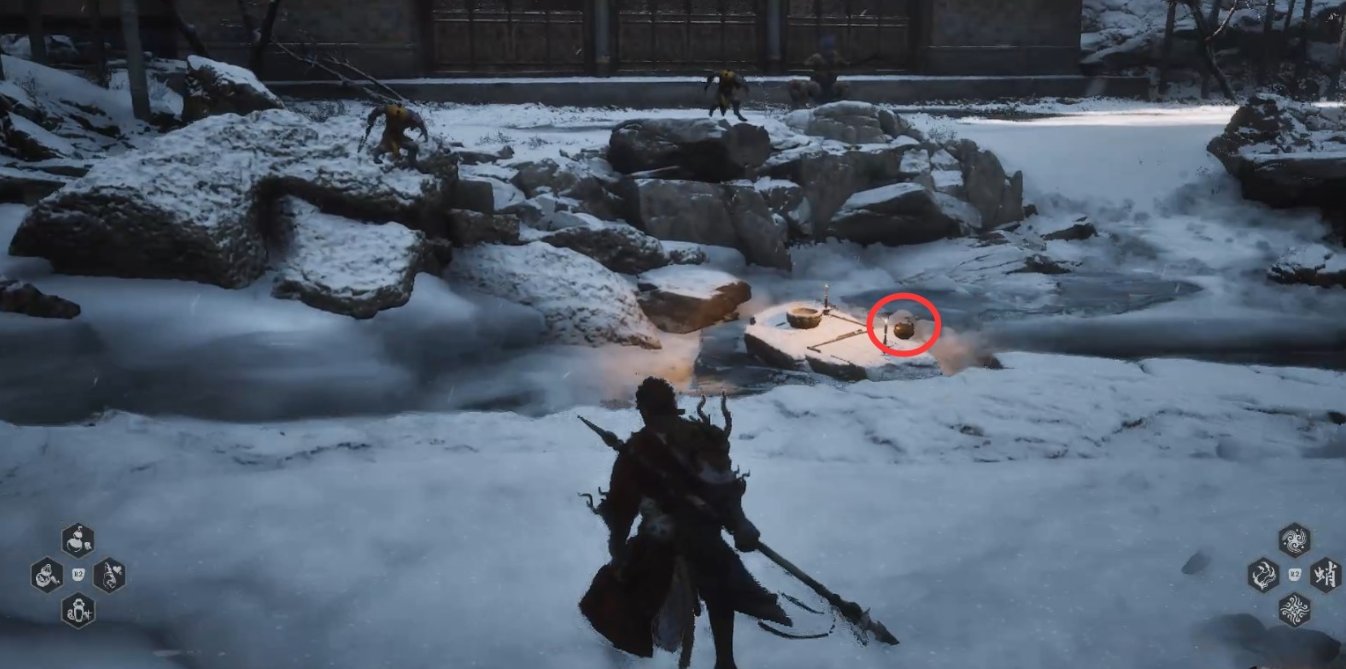 10、继续往前走穿过大门,击败海上僧得到【法术】皓霜,可以变身寒冻妖僧。(靠近下图左边那个方形的井,它就会出现)