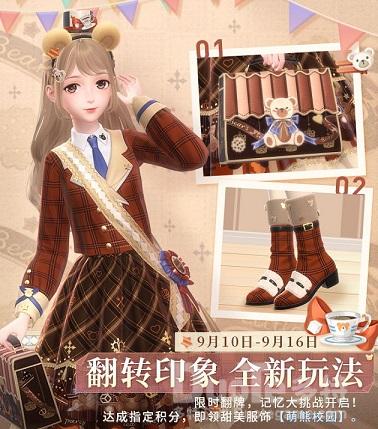 完成挑战达成指定积分,玩家即可领取稀有甜美服饰“萌熊校园”!戴上这对软萌的熊耳,来和胖嘟嘟的小熊玩偶甜蜜共舞吧。