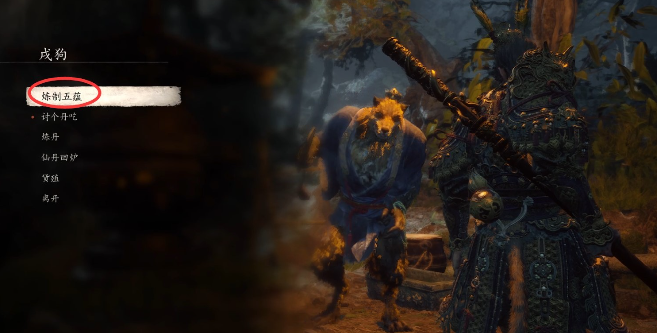8、五蕴集齐了(照见五蕴皆空,度一切苦厄),来到如意画轴,找戌狗炼制【五蕴丹】增强各种属性。