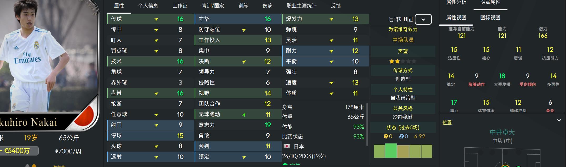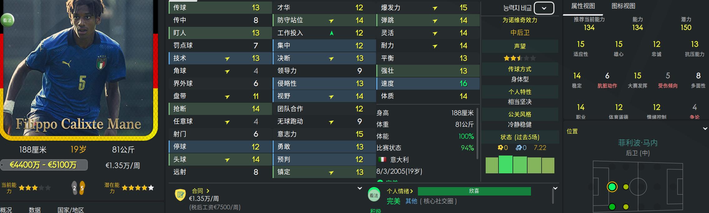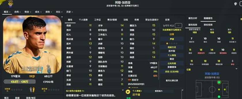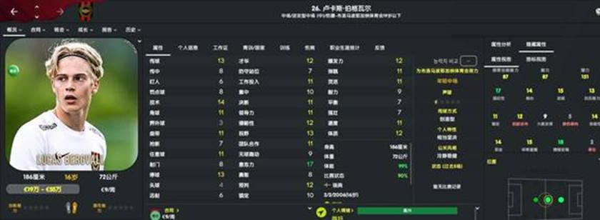 上一代就是性价比非常不错的中场小将,本代依旧推荐,练满也是顶级联赛主力级别的水平。