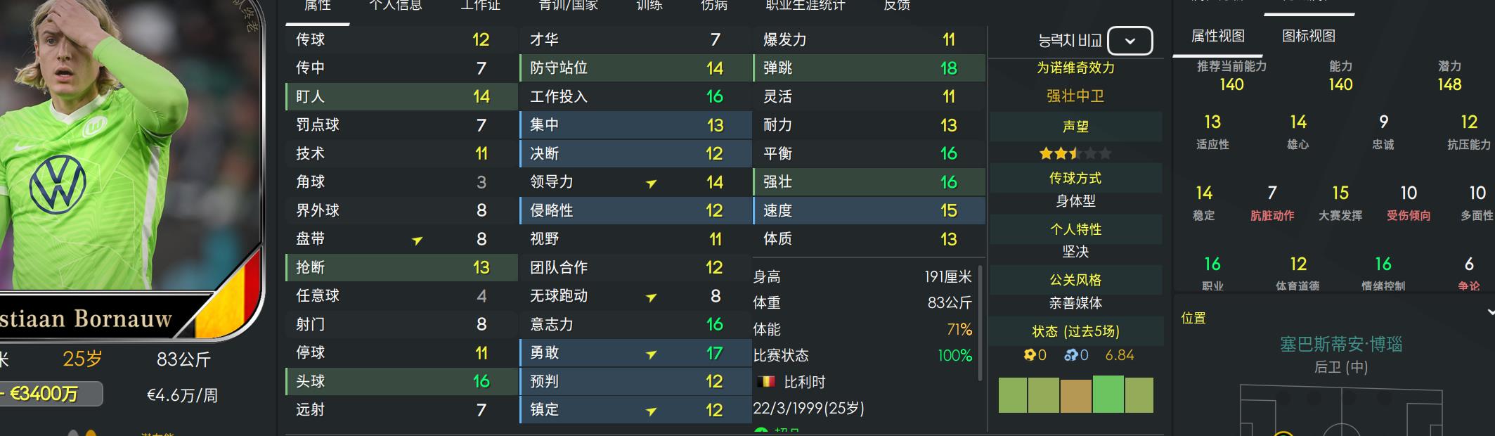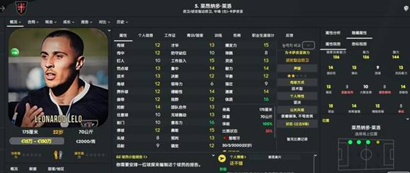 性价比非常高的一名中后卫,固定潜力137。身高和弹跳都没有问题,适合一些次级别联赛免签。不确定是否需要“塞尔维亚超级联赛”的数据库。