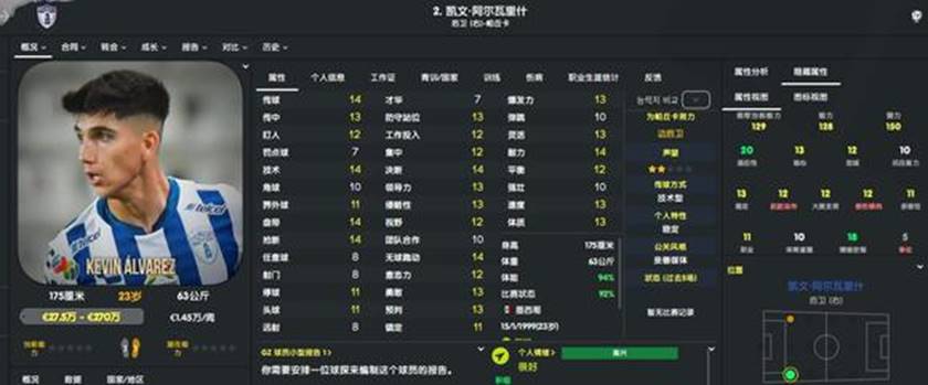 性价比超级高的一名边路球员,能左能右,年龄不大但是潜力很高。潜力高达-8.5,最高可以随到170,直接毕业。