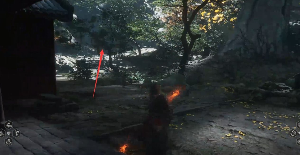 3、进右边的门后,左边树旁有个有个【打坐蒲团】。