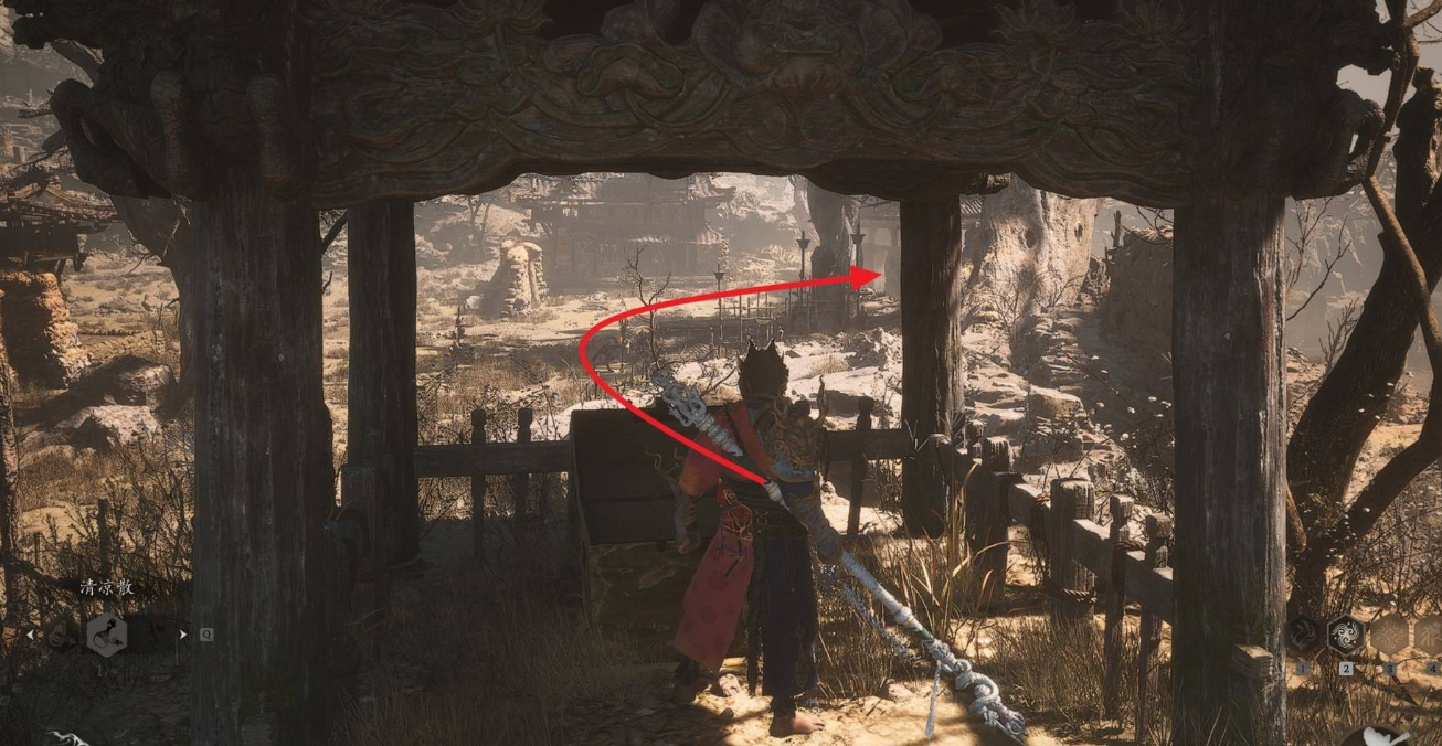 站在亭子处可以看到亭子对面的右侧有一扇大门,推开大门会触发与【沙国王&沙二郎】的BOSS战。