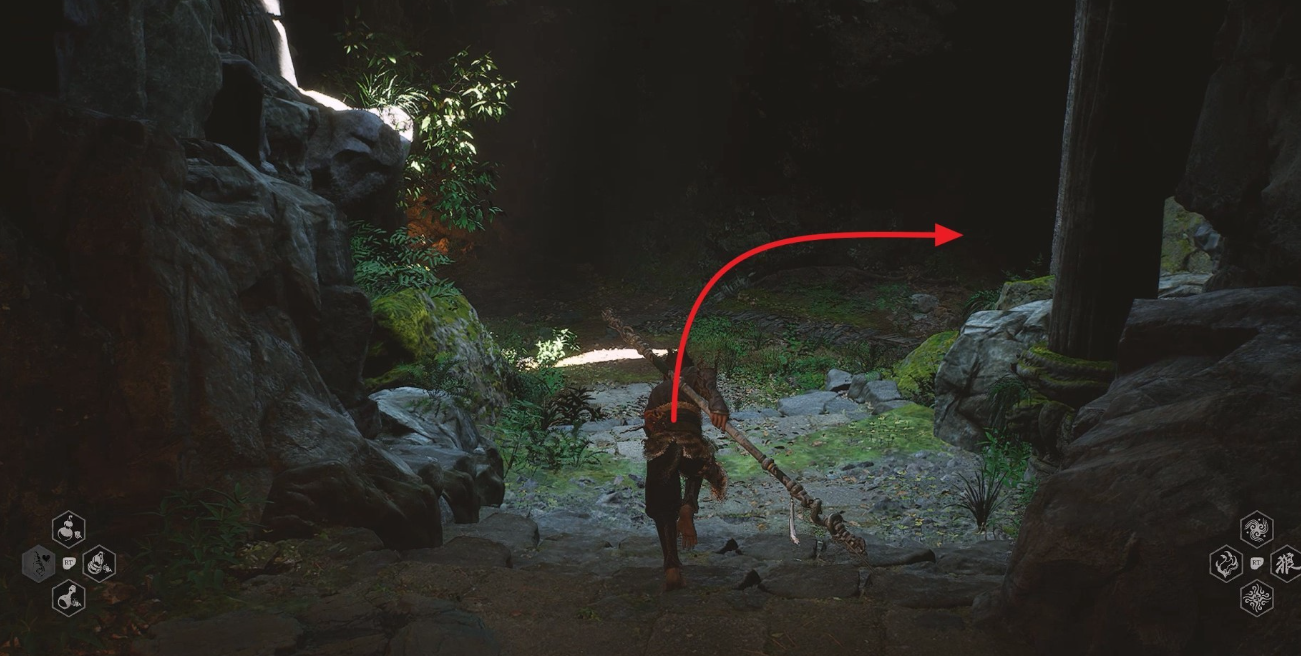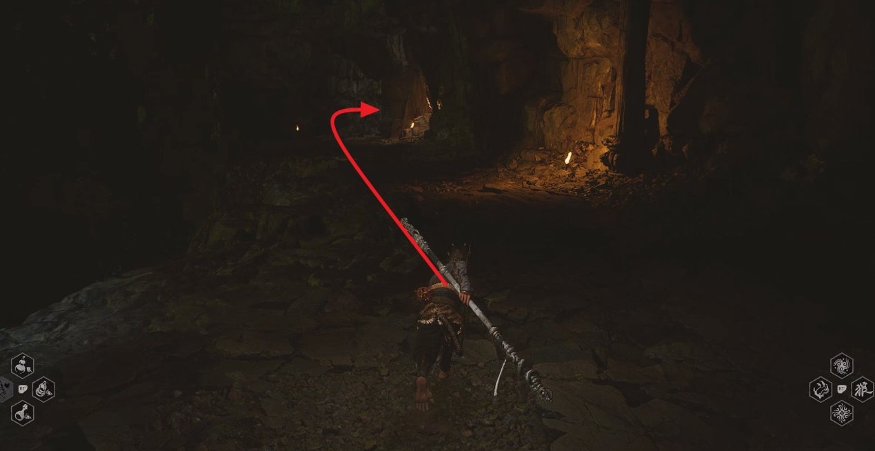 从第一回【黑风洞-洞内】篝火出发,进入山洞。