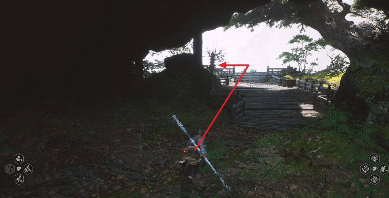从第一回【翠竹林-后山】篝火出发,从旁边的楼梯往下走到达下层。