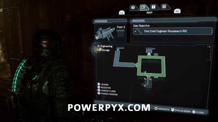 rig5–卢梭的装备:一旦您达到安全许可级别3即可使用。前往工程,然后前往燃料储存。在顶层,进入上锁的房间找到钻机。