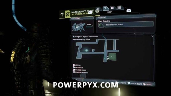 第1章,目标:查找数据板。在维护区办公室内的架子上,在数据板旁边,您需要前进。靠近架子以便能够抓住碎片。
