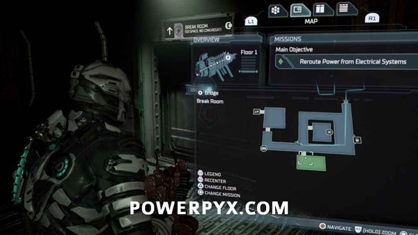 第4章,目标:从电气系统重新路由电源。在桥的3楼,进入休息室。碎片坐在地板上。