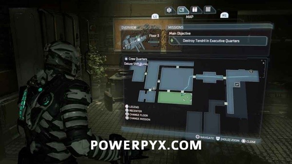 第10章,目标:摧毁豪华宿舍的卷须。在带有第二个卷须的走廊中,启用断路器处的门。然后进入底部的豪华班位,标记将在桌子上。