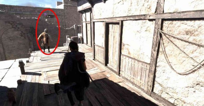 跟随男人穿过城镇。这会自动过渡到“喂羊”绕道。