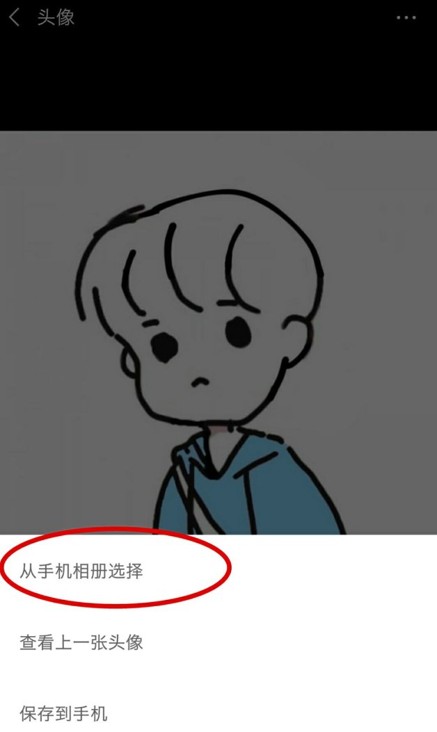 3、点击头像照片,点击头像右上角...然后选择从手机相册选择。