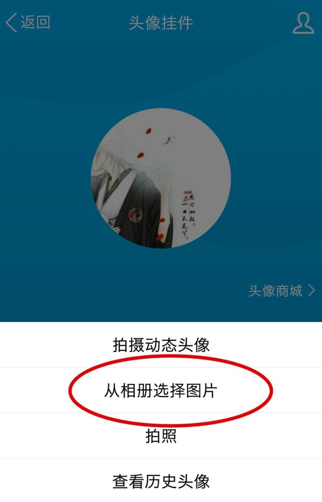 3,、再点击头像一下,选择从相册中选择图片上传为头像。