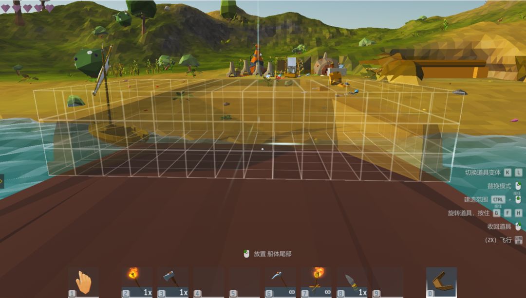 4、接着制作船体前部与后部。所需材料主要为木板、钉子以及任意锤子。制作一艘帆船是非常消耗铁锭以及原木的,所以岛主们在平时一定要记得多多收集。