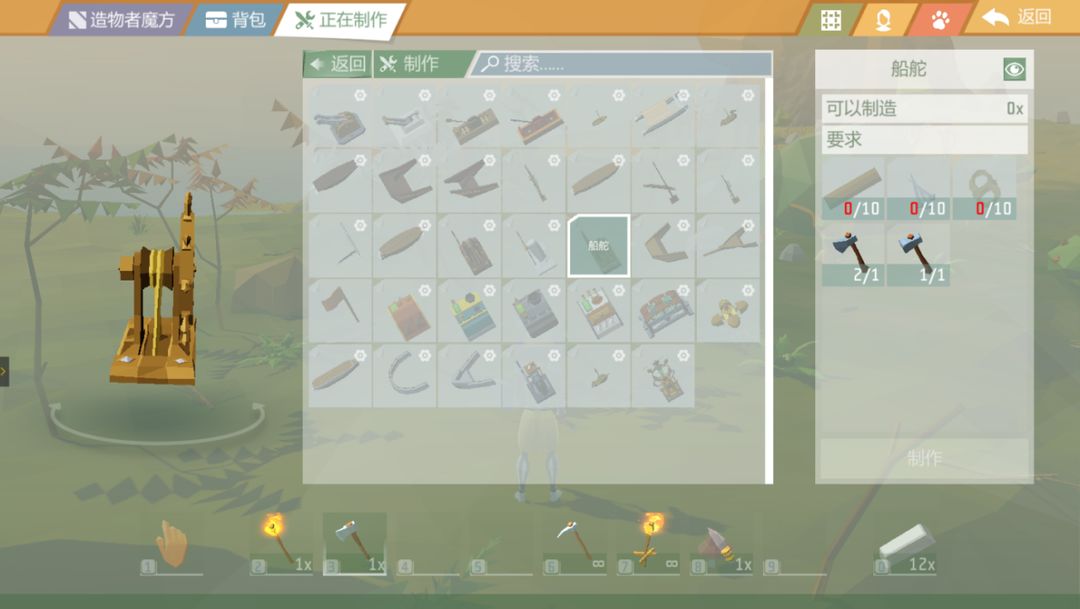 3、首先寻找一处空旷的海岸制作和停放船舶,然后根据要求收集和制作木板、钉子、原木以及任意锤子和任意锯子。其中,木板、钉子和锯子在制作时需要用到锻造炉,主要材料为:木棍、铁锭、原木以及任意锤子。