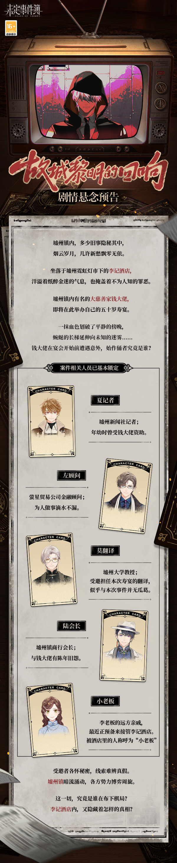 1月12日,大型新春版本主题活动「故城黎明的回响」即将开启,全新剧本演绎玩法上线,敬请期待!