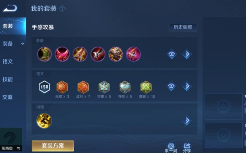 1、莱西奥3技能Ad加成一般,打法较怂,倾向使用3技能收割时,可选择闪电匕首+末世的组合。