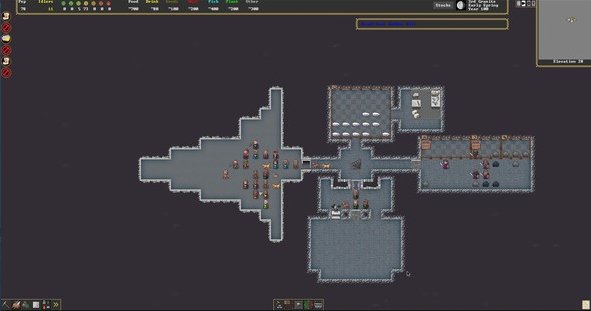 建造堡垒并尝试帮助您的矮人在一个深度生成的世界中生存。